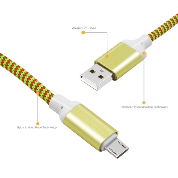 OD4.3 Colorful Nylon Braid Fast charging Micro usb data Charger Cable For Xiaomi for HTC